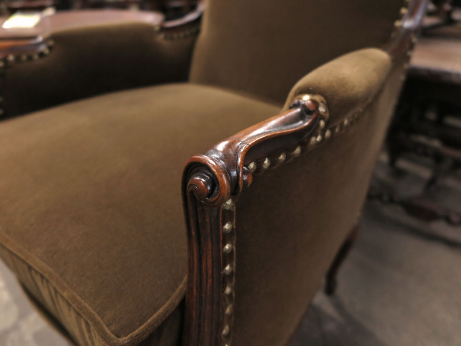 滑らかな曲線はどこか優し気で、ブラウン系のベルベット生地も柔らかな印象を受けます。