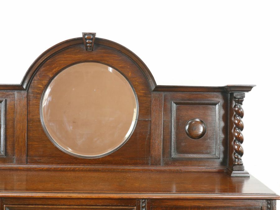 扉部分の彫刻はリネンフォールドと呼ばれるゴシック様式から続くデザインを取り入れたものであり、ツイストレッグはターニングと呼ばれる技法によって作り出される代表的なデザインです。