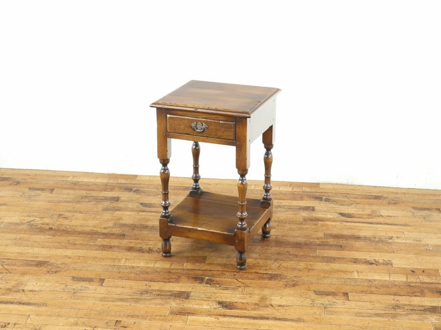 小さ目の引き出しと下には棚板がついたナイトテーブルです。