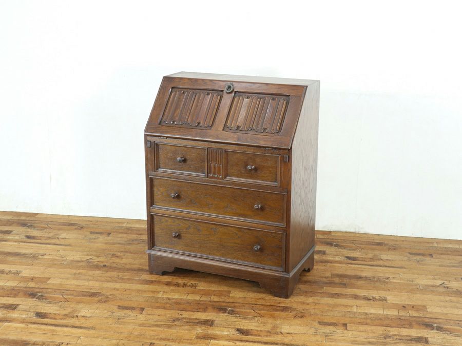 扉のリネンフォールドの装飾がチャームポイントとなったライティングビューローです。