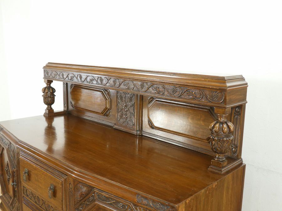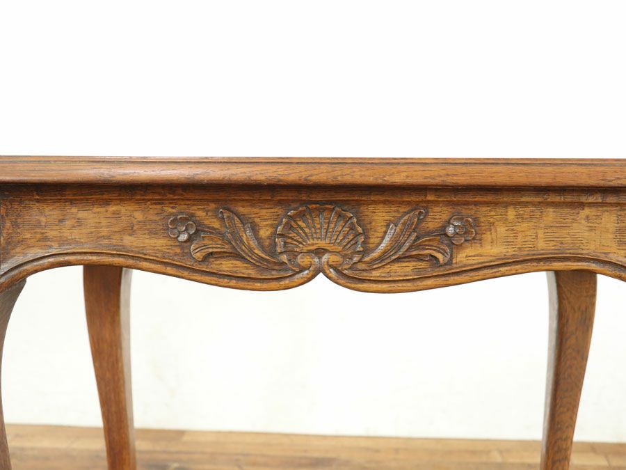 他の画像を見る 落ち着いたお色と細かな彫刻 フランス 猫脚サイドボード 65336 市場参考上代 ¥ 400,000 業販価格 ¥ 235,000 税込 幅216×奥57×高118(天板高102)cm お気に入りに登録する
