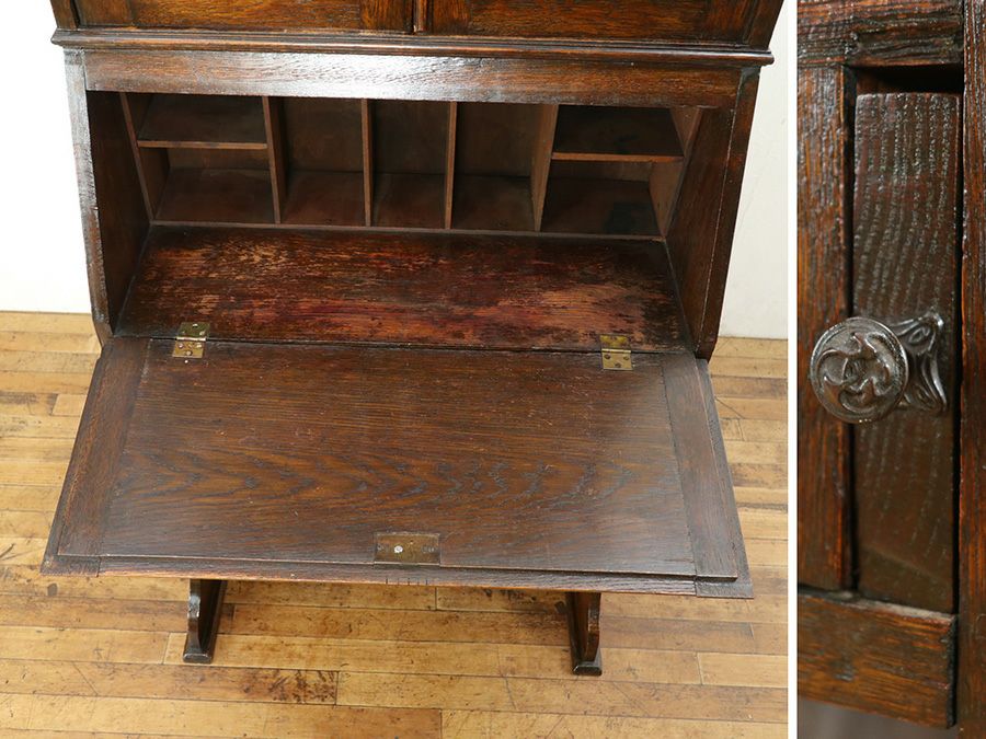 他の画像を見る 圧倒的存在感 ステンドグラスも魅力 イギリスアンティーク ブックビューロー 59323 市場参考上代 ¥ 561,000 業販価格 ¥ 330,000 税込 幅100×奥47(拡張時77)×高209(デスク高68)cm お気に入りに登録する