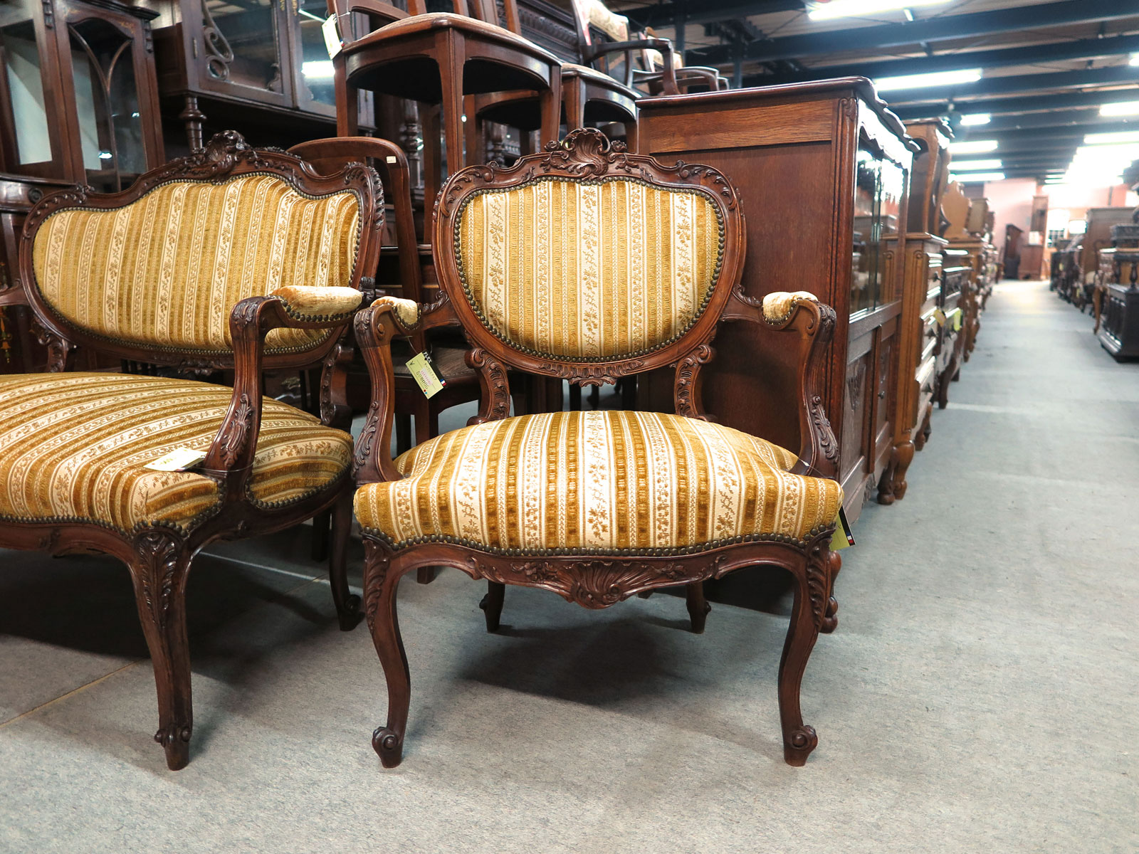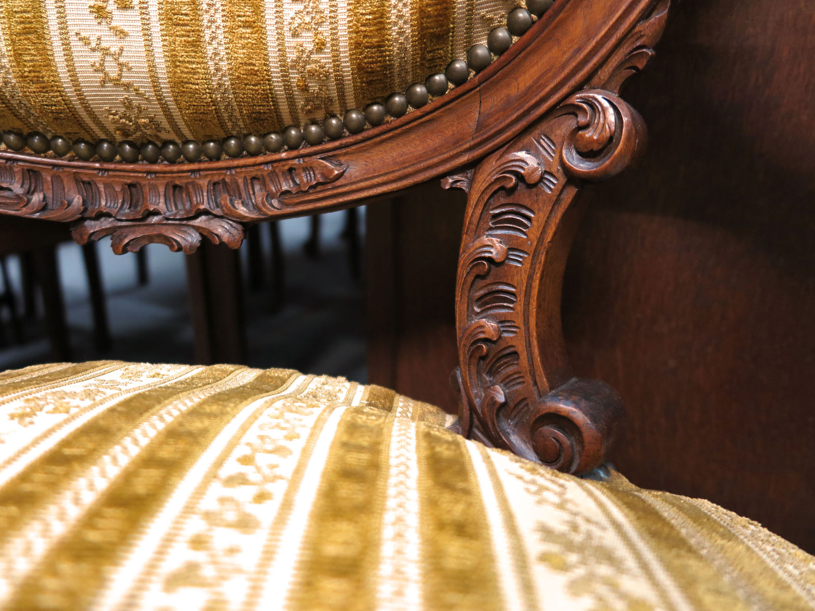 こちらのアームチェアももともとは豪華なサロンセットの一部であったものだと思います。