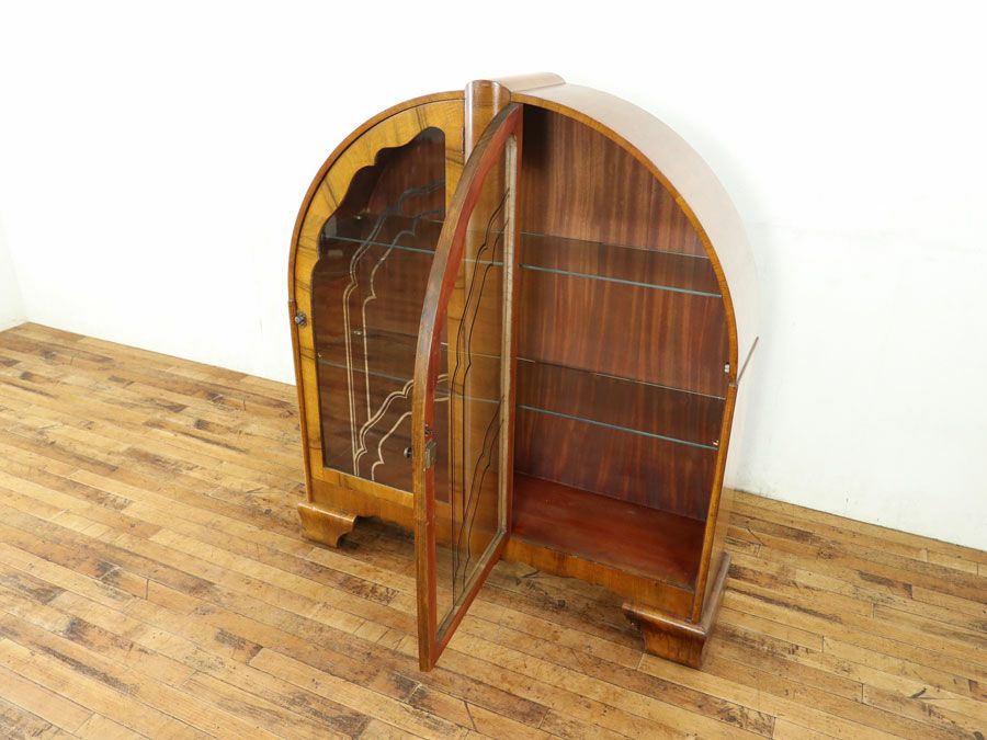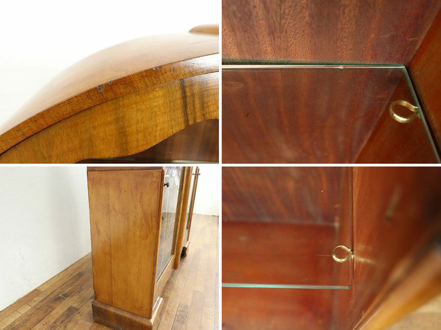 高さが180センチ以上あるようなものでも奥行きは40センチ以下のものがほとんどというアンティーク家具の中では薄型と言えるジャンルです。1枚扉、2枚扉、3枚扉、上下左右で合計4枚の扉付いたもの、引き出しまでついたものなどこれまたいろいろで見ているだけで楽しいですね。上下で扉でわかれているものや背の高いものなどは下部分が目隠しになっているものもあり、本棚としてだけでなく、ディスプレイ兼収納としてお使いいただけます。