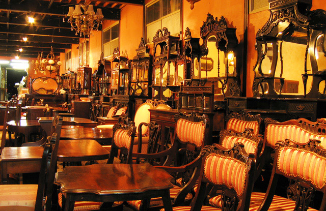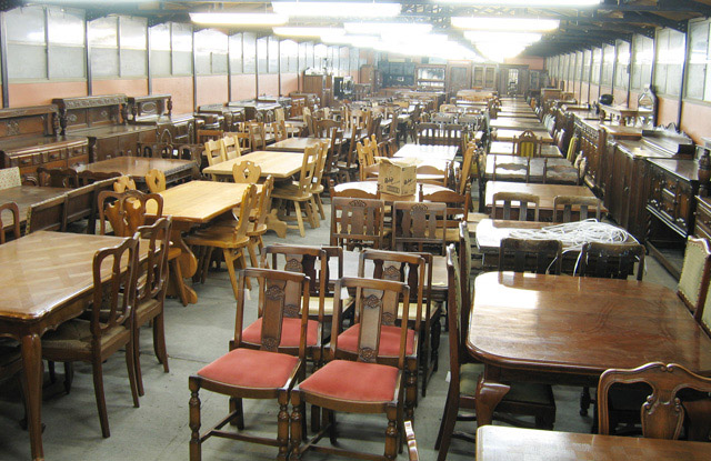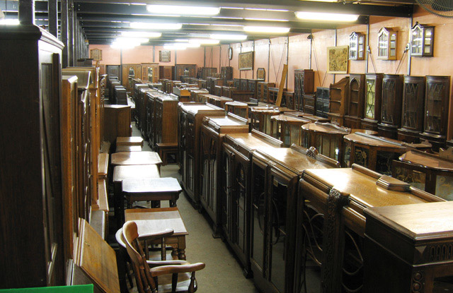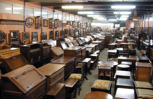 チェスト・ビューロー・ドレッサーなどの定番家具やミラー・ハンガー・ウォールキャビネットなどの 壁掛け家具、マガジンラック・コーヒーテーブル・スツールなどの小型家具が所狭しと展示されています。